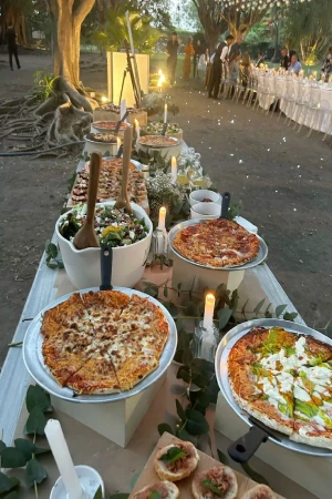 شام میتواند در فضای باز، حیاط یا یک روف گاردن با دکوراسیون خاص ارائه شود. طراحی میزهایی با پارچههای گرانقیمت، گلهای طبیعی و ظروف زیبا برای ایجاد فضایی لوکس و رمانتیک بسیار مهم است.